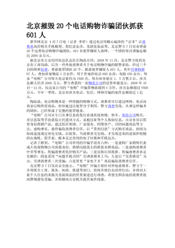 北京摧毀20個(gè)電話購(gòu)物詐騙團(tuán)伙抓獲601人
