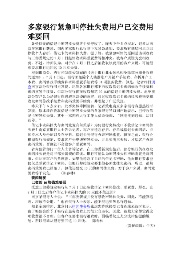多家銀行緊急叫停掛失費(fèi)用戶已交費(fèi)用難要回