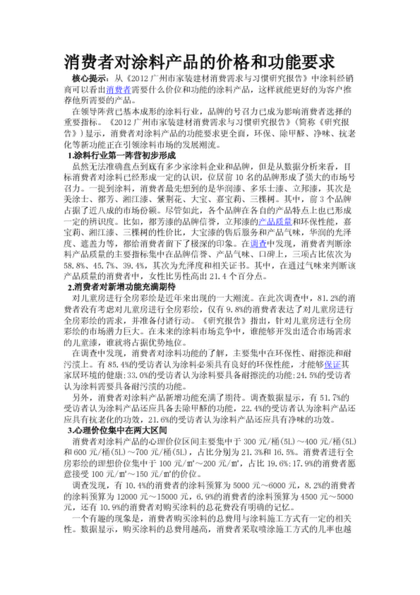 消費(fèi)者對涂料產(chǎn)品的價(jià)格和功能要求