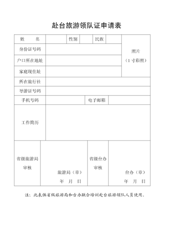 赴臺(tái)旅游領(lǐng)隊(duì)證申請(qǐng)表