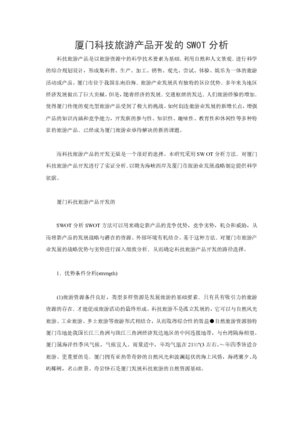 廈門科技旅游產(chǎn)品開(kāi)發(fā)的SW0T分析
