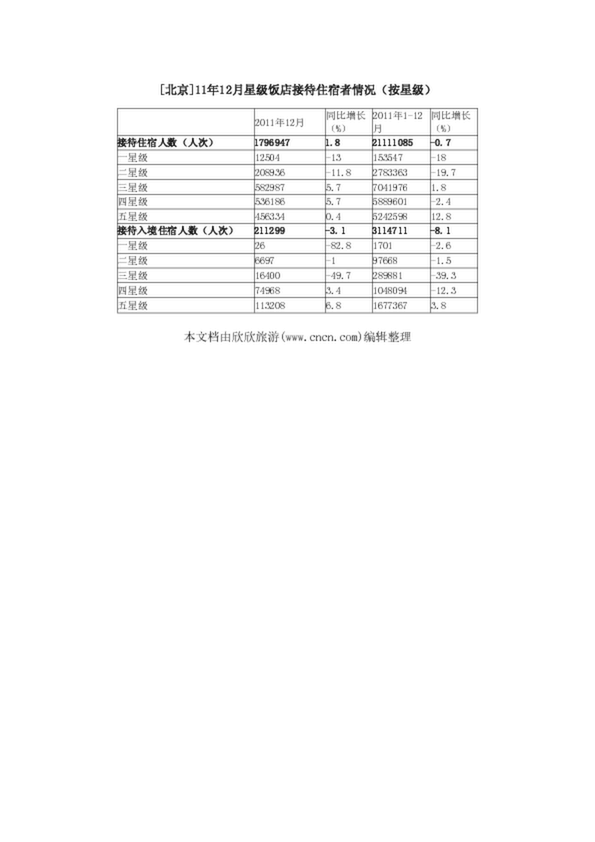[北京]11年12月星級(jí)飯店接待住宿者情況(按星級(jí))